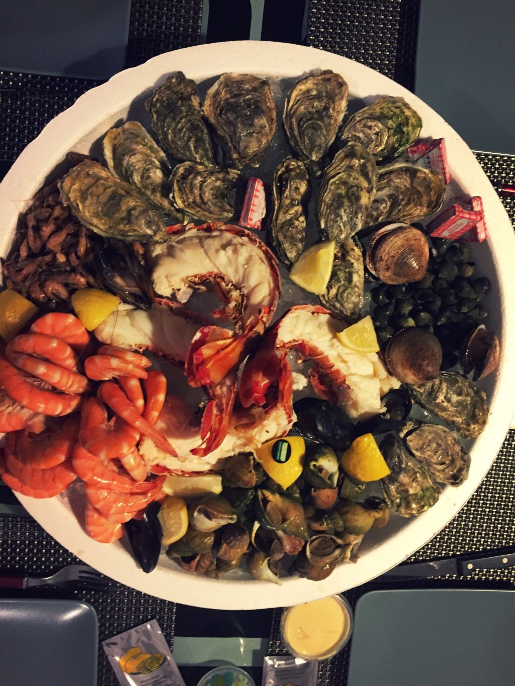 Depuis 2010 nos plateaux de fruits de mer sont composés d’huitres fines de mer et spéciales nées et élevées en mer non triploïdes, nouveauté la royal utha beach.